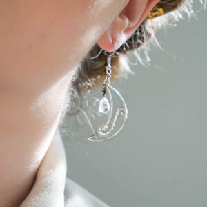 Two delicate crescent moons with aura quartz crystals Argentium (935) Silver
